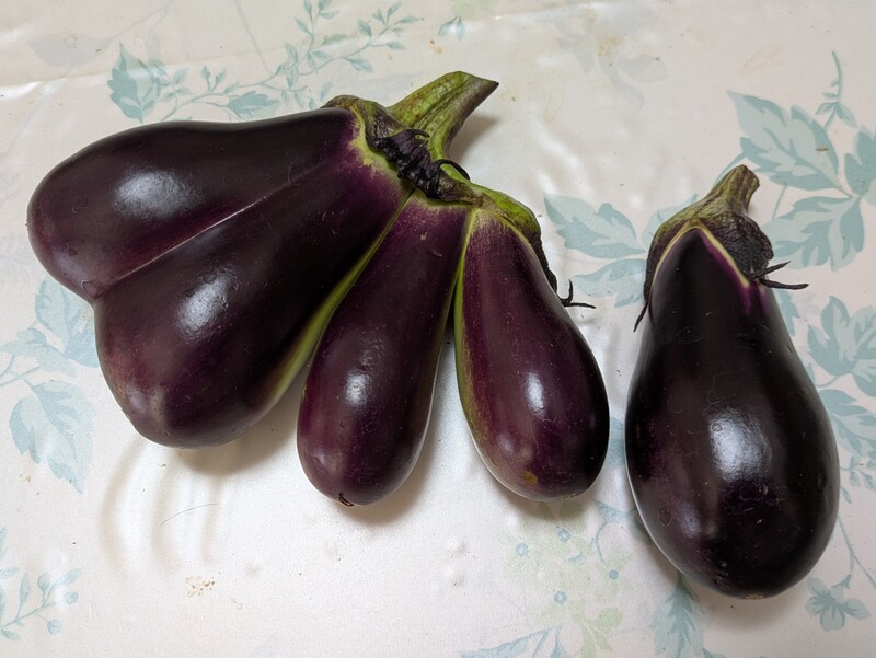 写真提供 藤井さん作 「突然変異? 4つ子のナス」 |